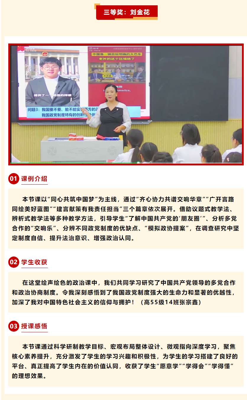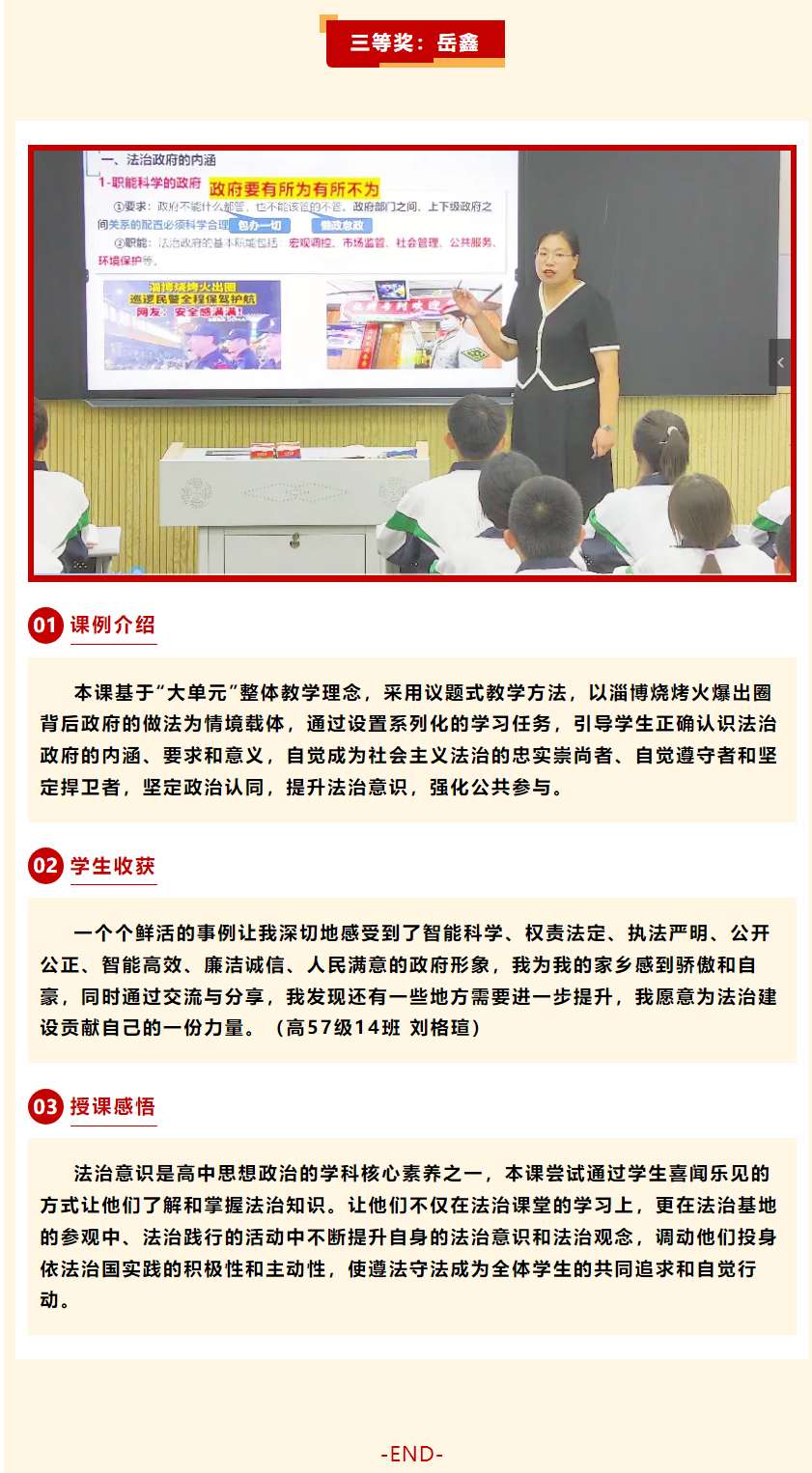 近日,在山东省教育厅组织的“法治好课”评选过程中,我校政治组教师积极参加,充分发挥法治教育课堂主渠道的作用,有三名教师的课例获评山东省中小学“法治好课”优秀课例。