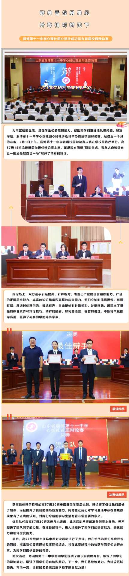 群雄舌战展雄风 争锋相对辩天下——淄博第十一中学心理社团心扬社成功举办首届校园辩论赛
