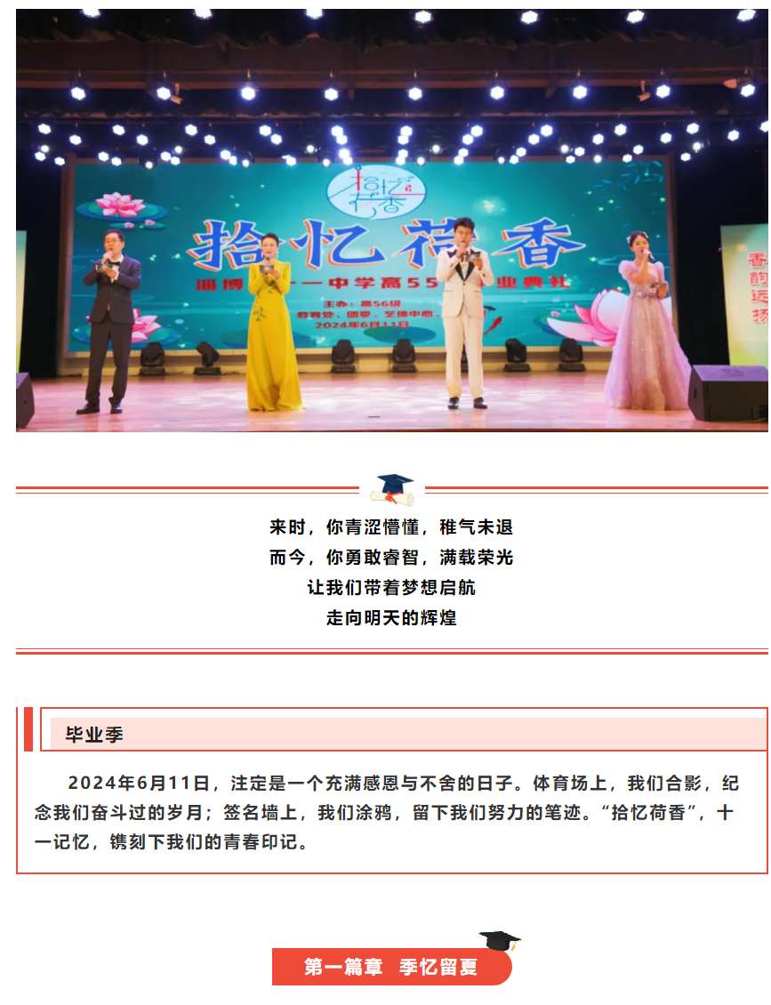 毕业,不说再见;扬帆,再启新航——淄博第十一中学举行“拾忆荷香”高55级毕业典礼