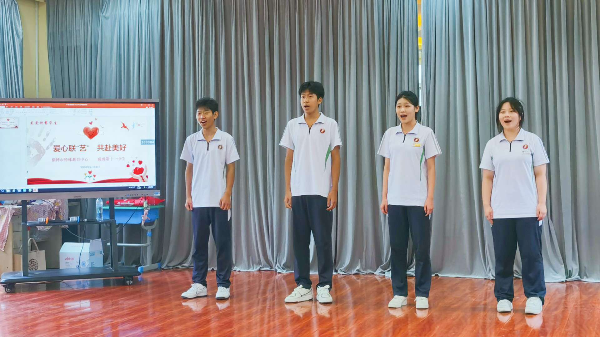 淄博第十一中学艺体中心主任刘玉伟代表学校向淄博特教中心的老师、同学们表达了热切的问候和真心的祝福,对特教中心学子自强不息、坚韧不拔的精神表达了深深的敬意,希望两校学生在今后都能成为国家的栋梁之才。特教中心听障部李雪梅主任对淄博第十一中学师生们的到来表达了热烈的欢迎和衷心的感谢。